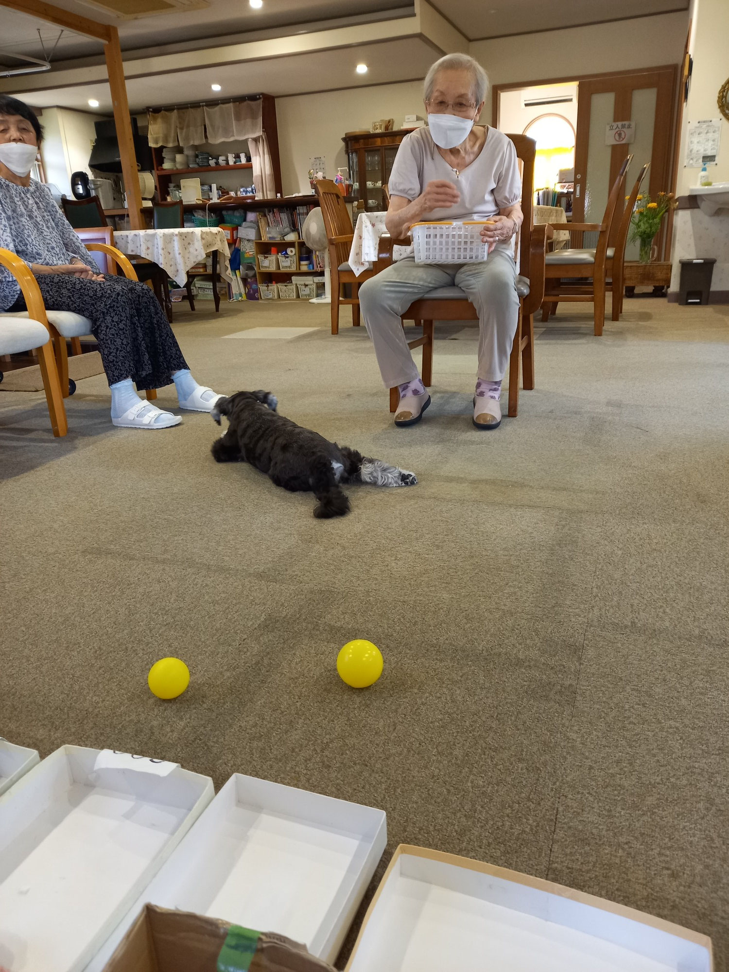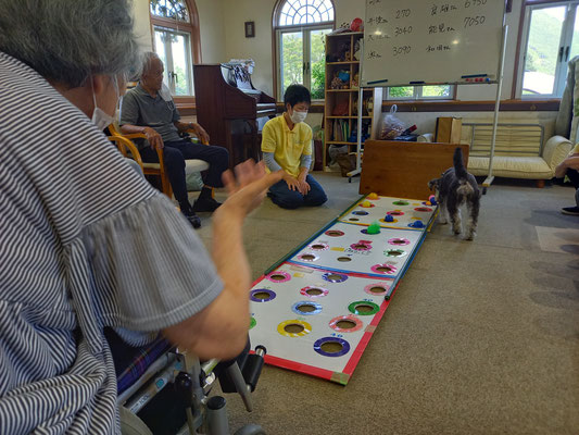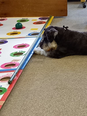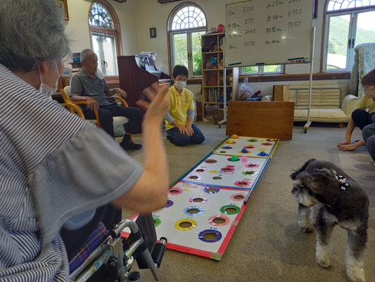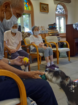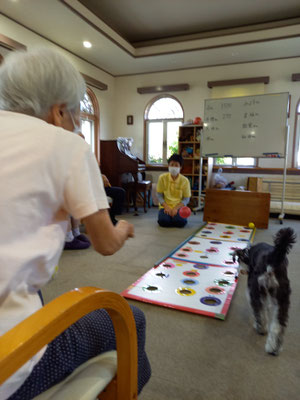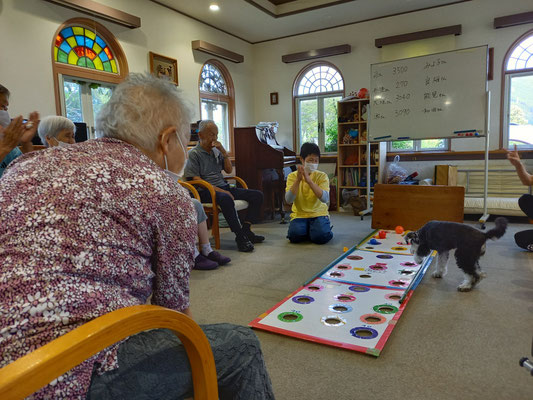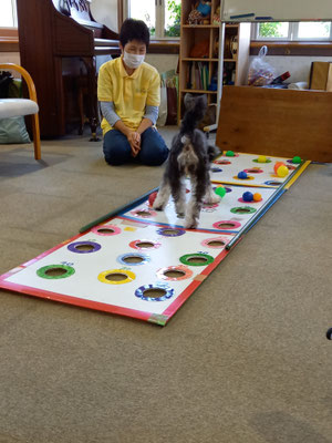 ところが、バムが上手に飛びついて取ってしまったり、皆さんが失敗されてころこんだりで、笑いや奇声がでます。