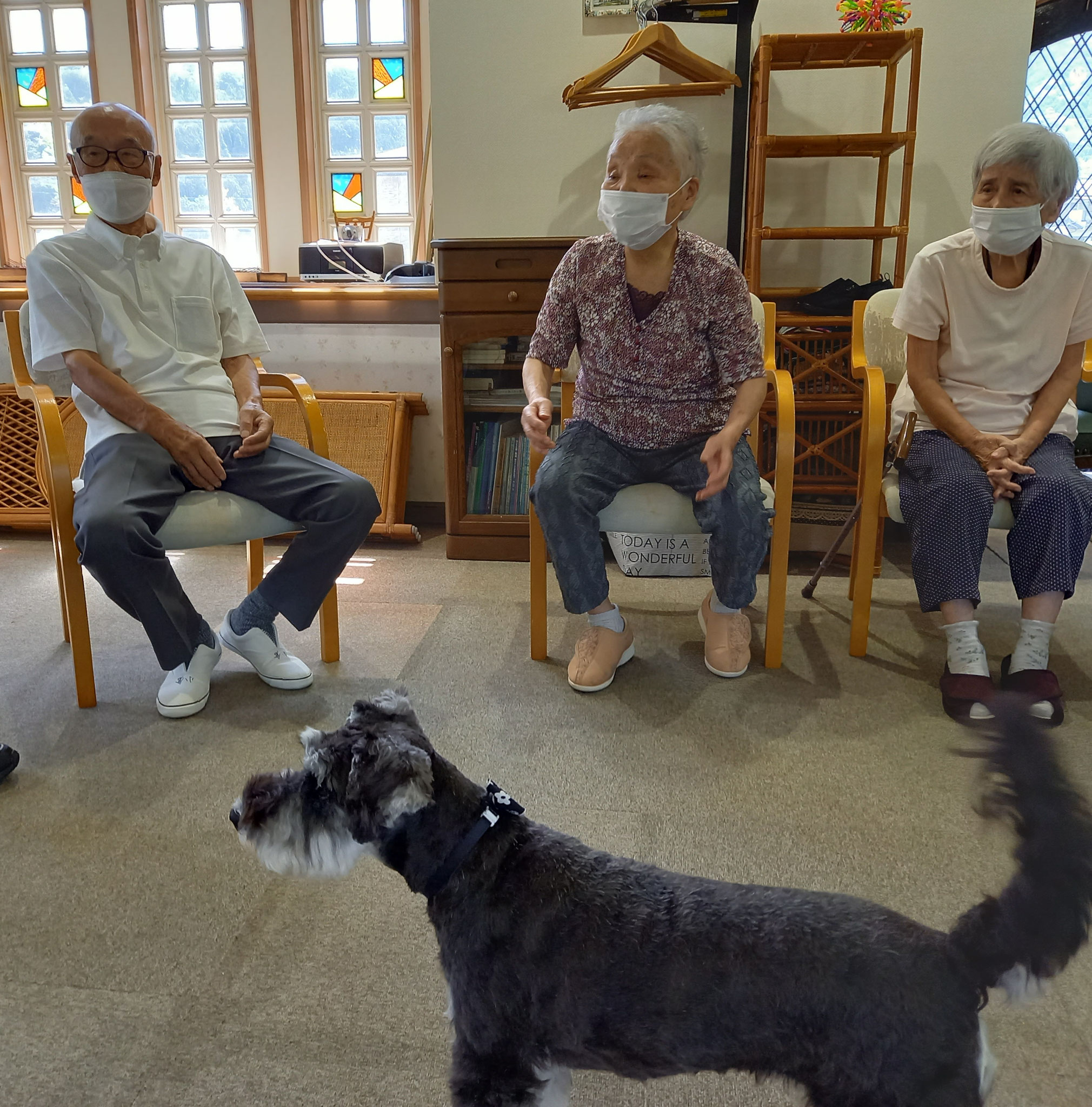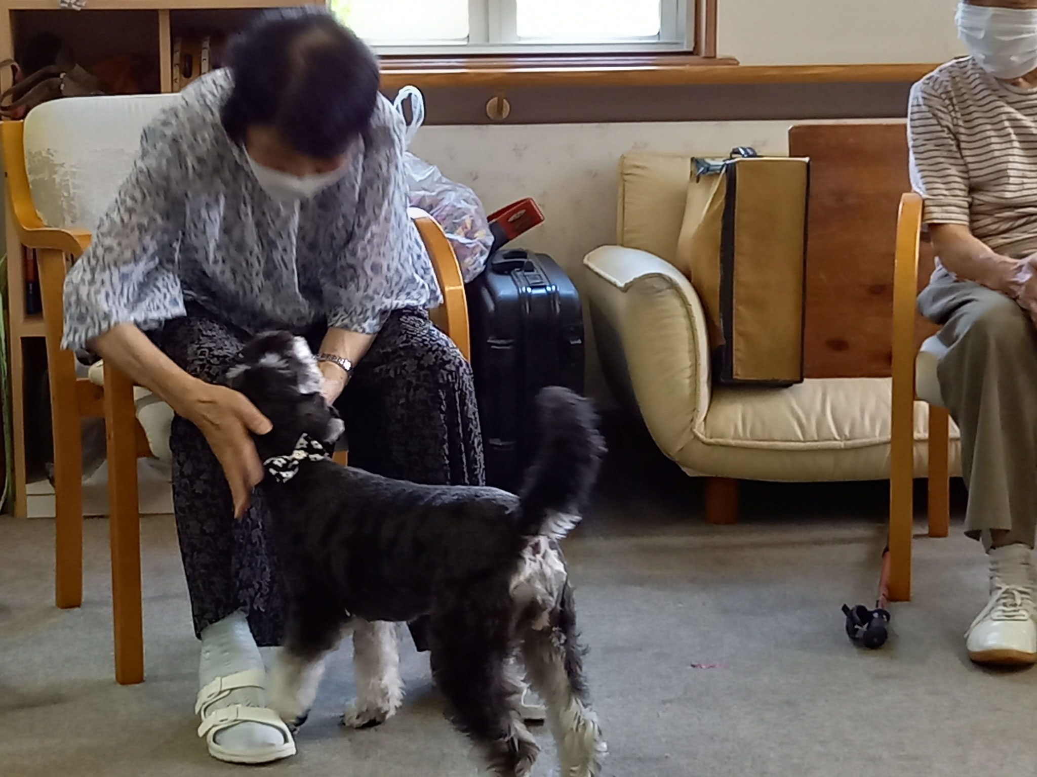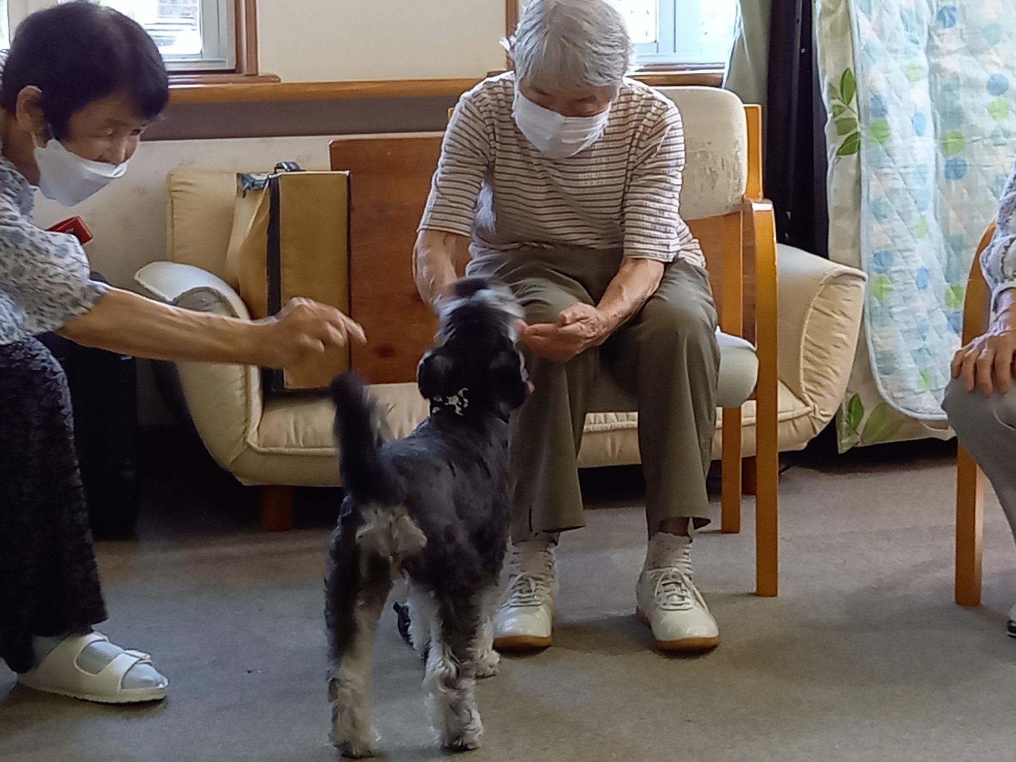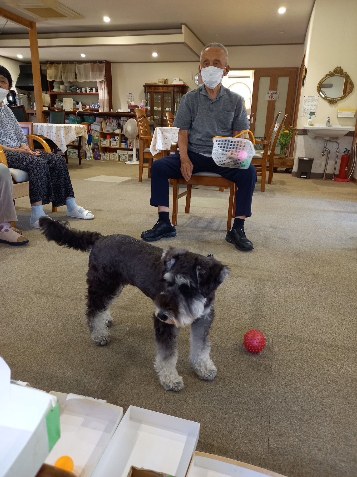 おやつ目当てで来ることの無いように気を付けていますが、皆さんがおやつを持ってらっしゃることは、バムはもうわかっています。