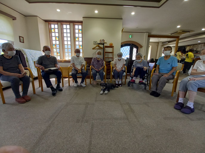 そして演奏が終わると、皆さんの方へ行き「わたちもいれて~」みたいな表情。