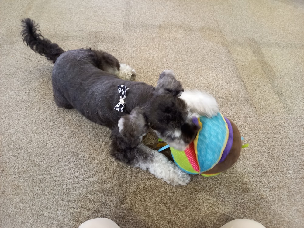 最近、皆さんも楽しんでくださり、バムもとっても喜ぶボール遊びが「バムとボール取り合いゲーム」です。