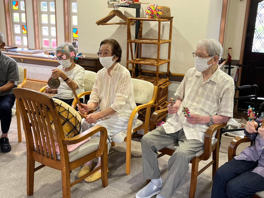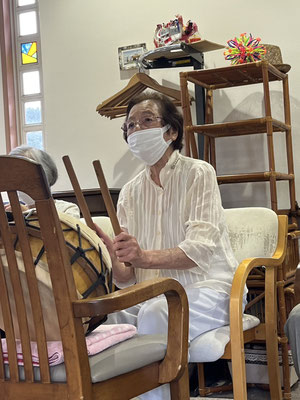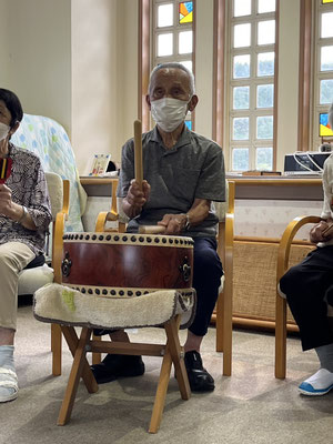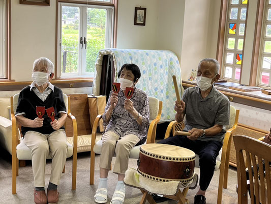 和太鼓・両面太鼓・鉦・鳴子・鈴 で、お祝いお祭り気分を出しました。