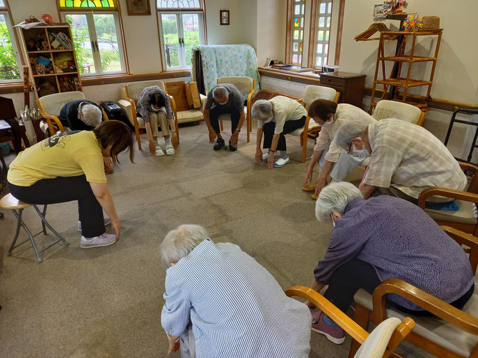 全員で前屈運動💦💦う~~ンってうなってる方もいらっしゃいますが