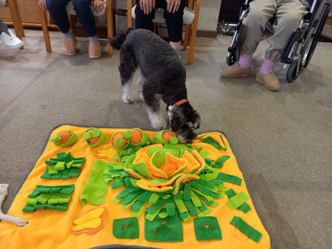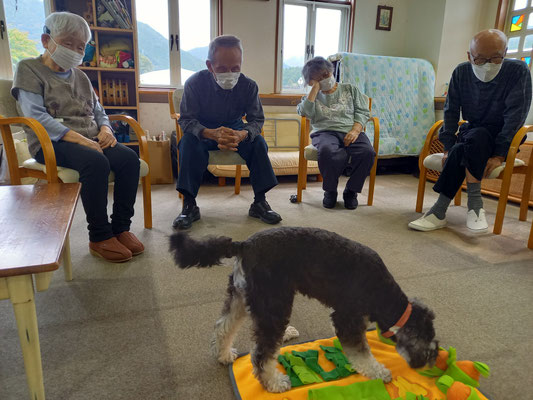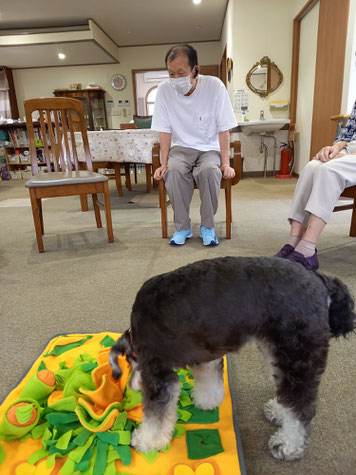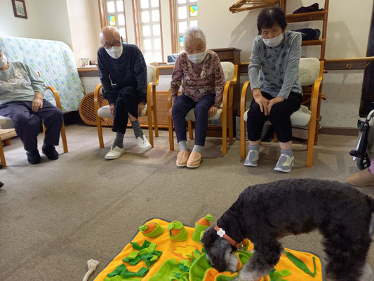 カリカリっとおやつを食べる音がすると「あっ!見つけて食べた!!」と喜こんでくださいます。