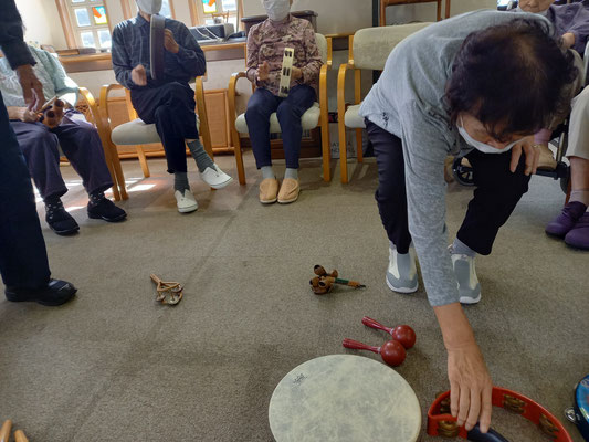 そしてリズム楽器を10種類ほどご提示し、好きな物を選んで頂き演奏です。