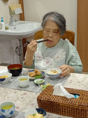 Kさん、もう少し体重を増やしていただきたいので、しっかり召し上がってほしい・・・とスタッフ。