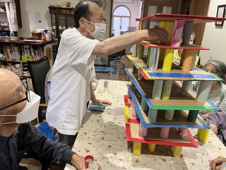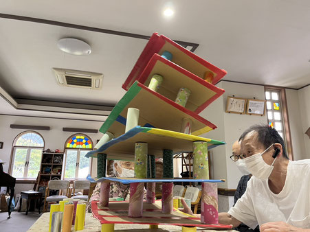 そして午後の取り組みですが、Kさんリクエストのバランスタワーです。