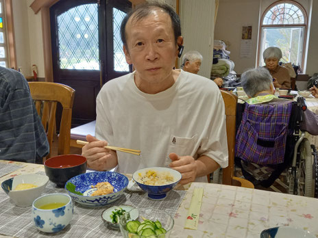 さあ、栗の木の持ち主Kさんの栗ご飯食べっぷりは・・・