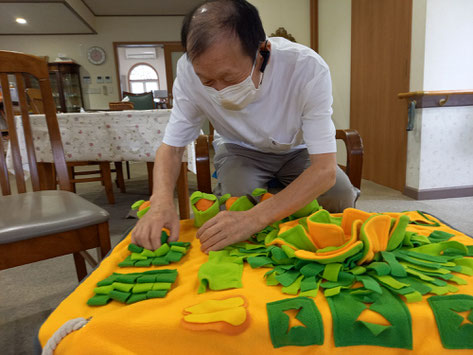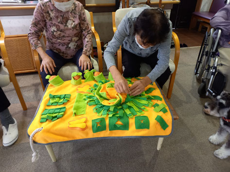 小さなおやつを、マットの中に隠します。